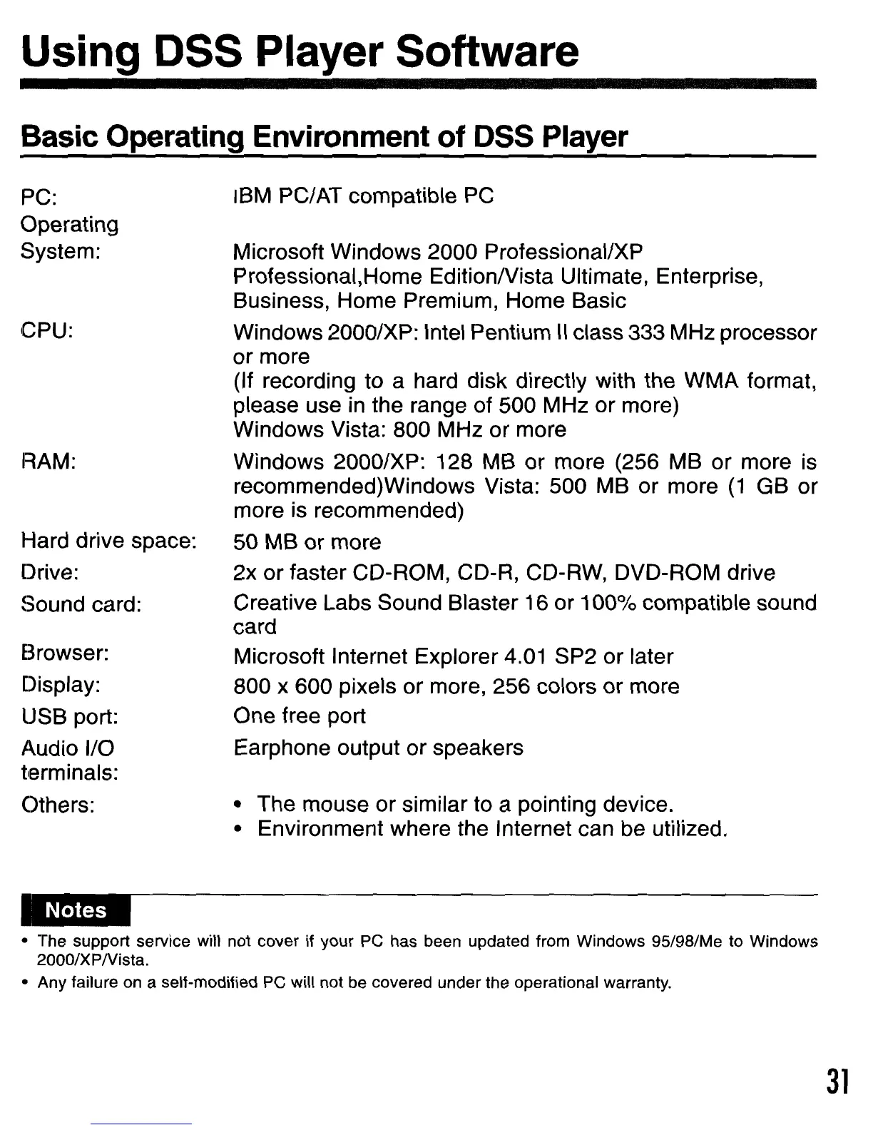 Basic Operating Environment of DSS Player