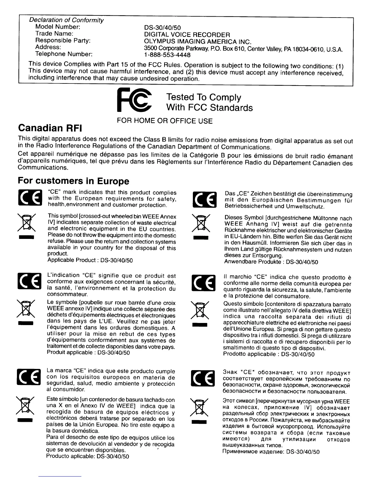 Responsible Party: OLYMPUS IMAGING AMERICA INC.