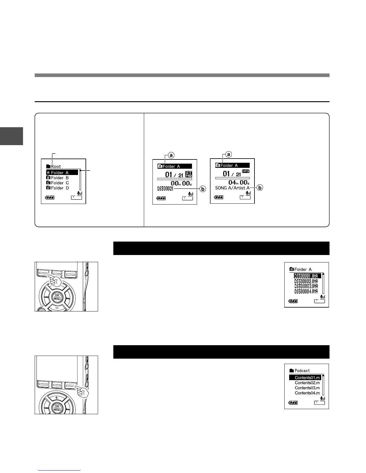 Press the FOLDER button while the recorder
