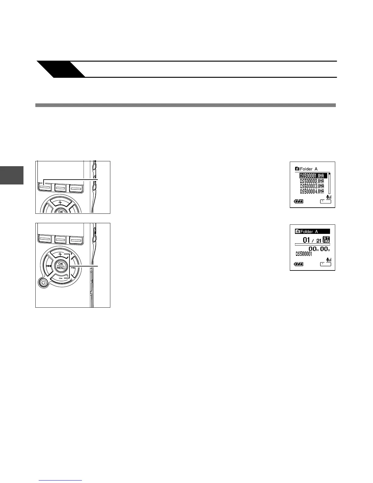The recorder can play back WMA and MP3 format files. To play back a file recorded with