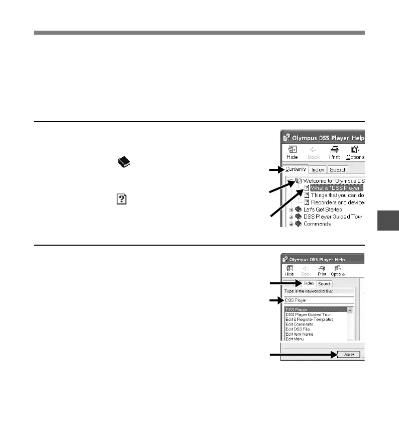 • While DSS Player is running, choose [Contents] from the [Olympus DSS Player Help] menu.