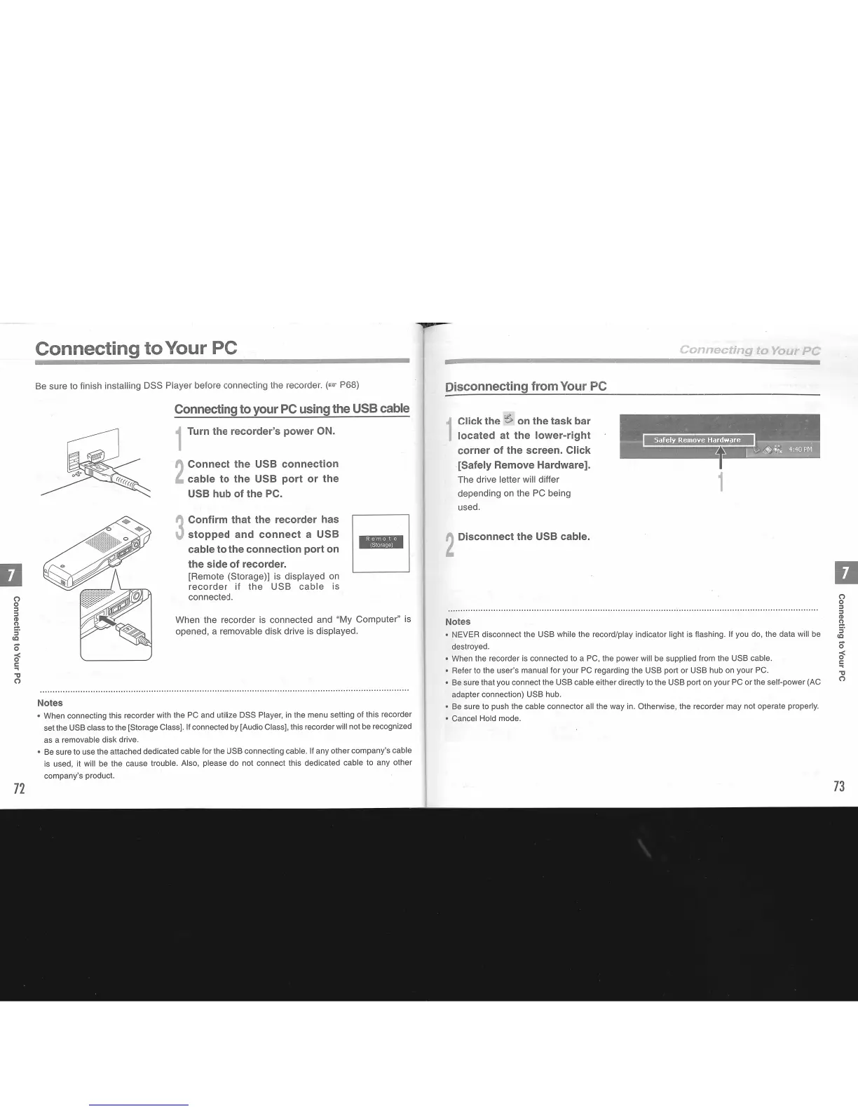 Olympus DS-75 - Connecting to Your PC; Disconnecting from Your PC