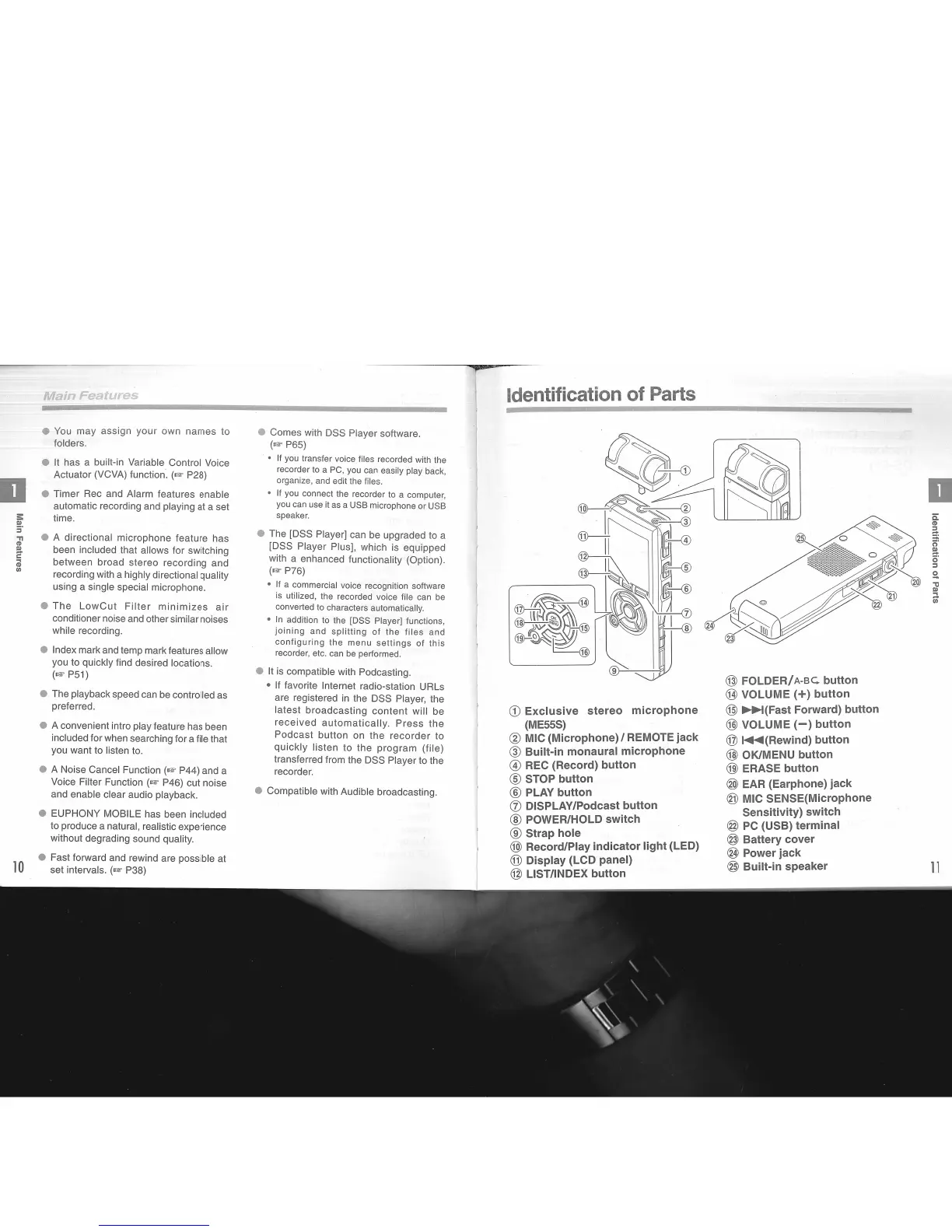 Olympus DS-75 - Identification of Parts