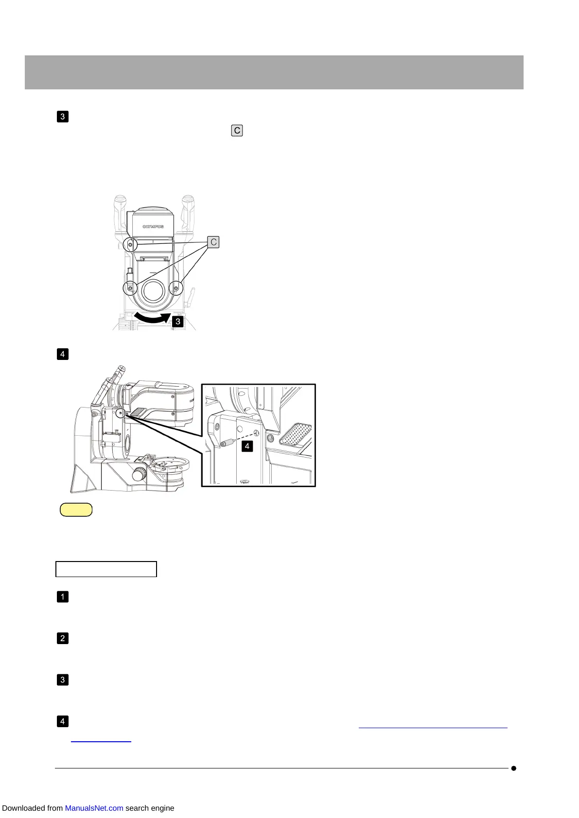 While pushing the zoom head to the microscope frame, rotate the zoom head counterclockwise until it stops, and
