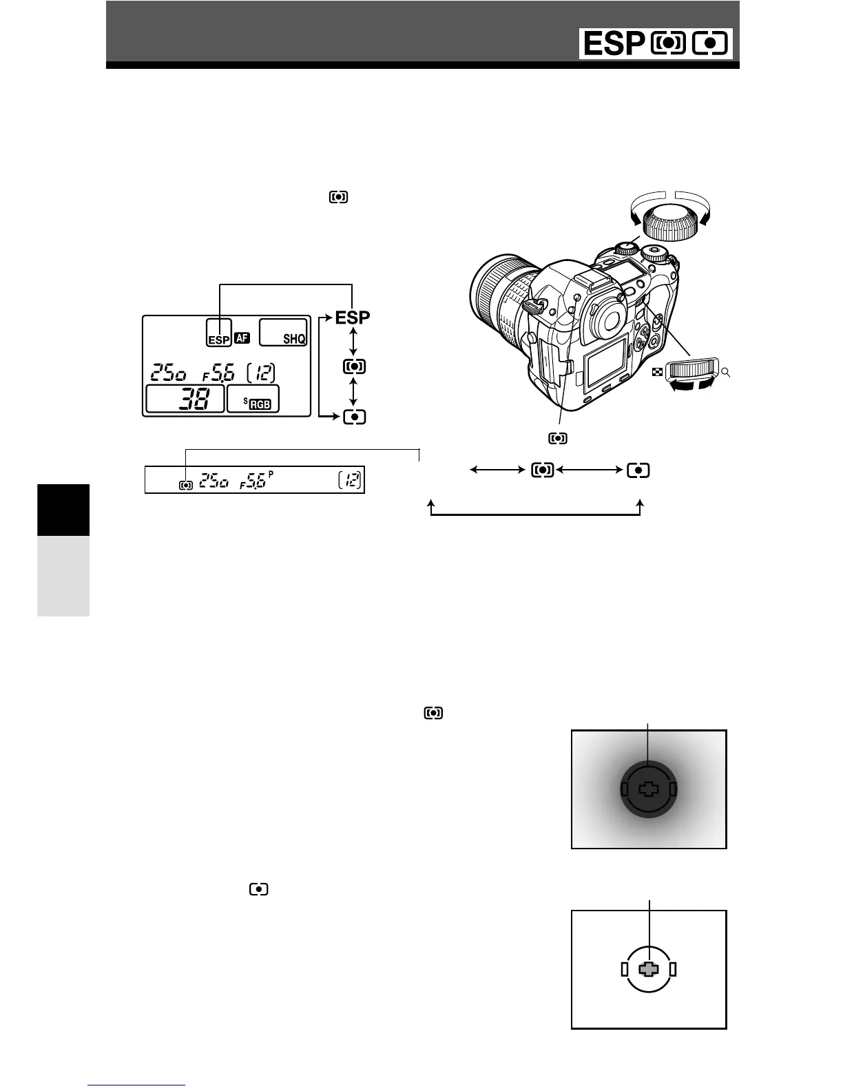 There are 3 ways of measuring the subject brightness: Digital ESP metering, Center
