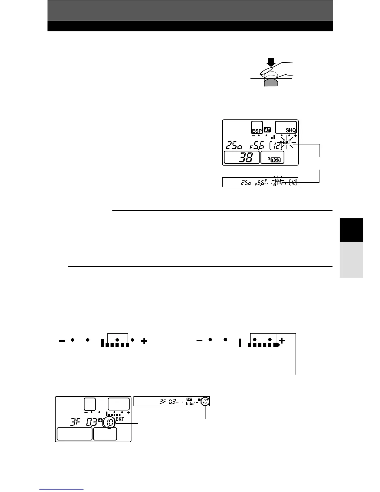 ● BKT blinks on the control panel and viewfinder