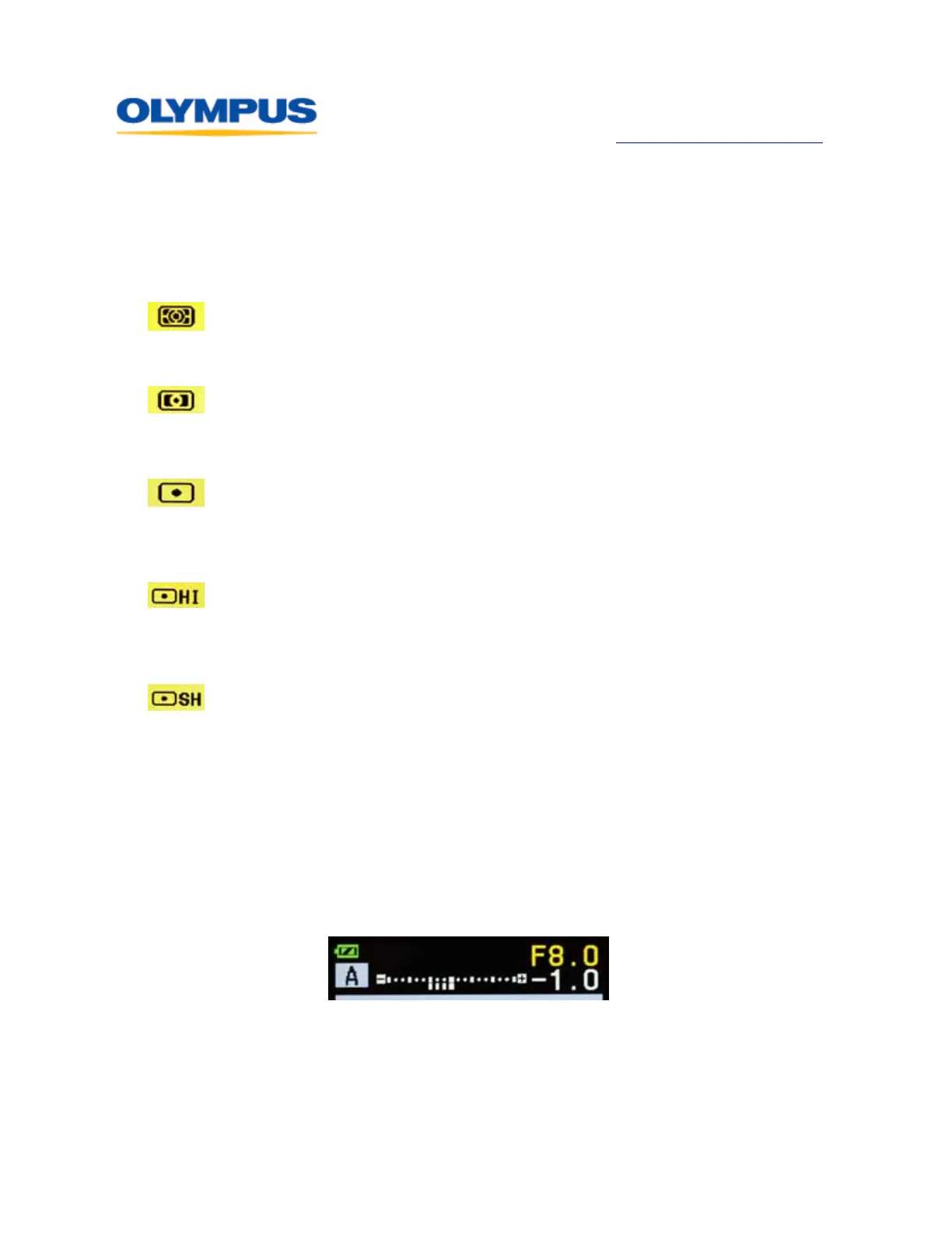 screen or the camera menu. Descriptions and applications of the metering modes are