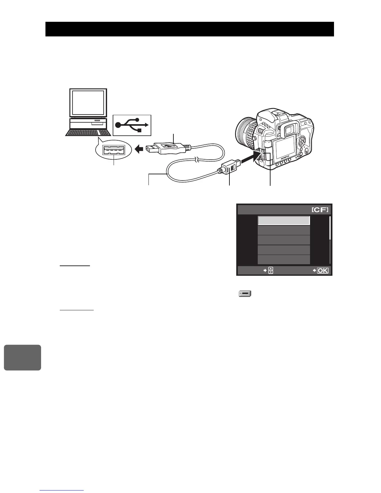 Use the provided USB cable to connect the computer’s USB port to the camera’s