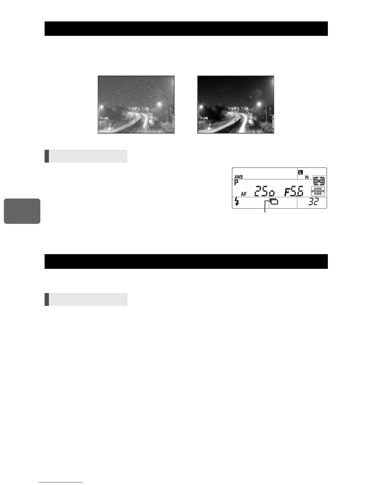 scenes, shutter speeds are slower and noise tends to appear in images. When the shutter