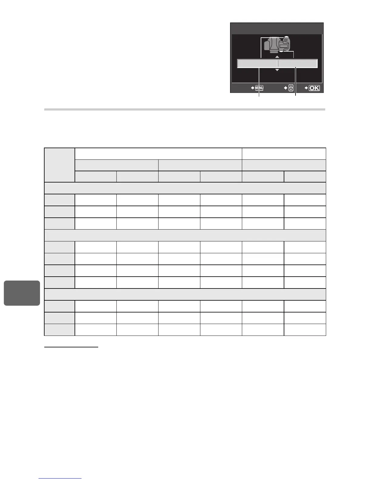 in each focus mode. (You can only select