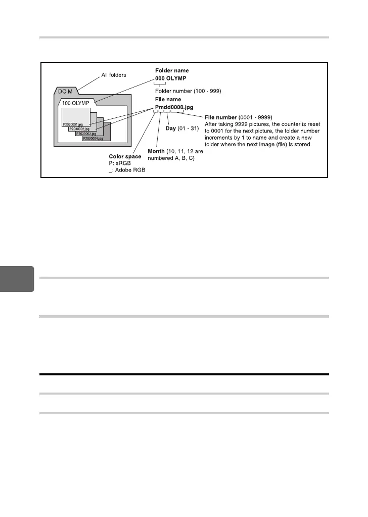 When a new card is inserted, folder numbers start at 100 and file numbers start at