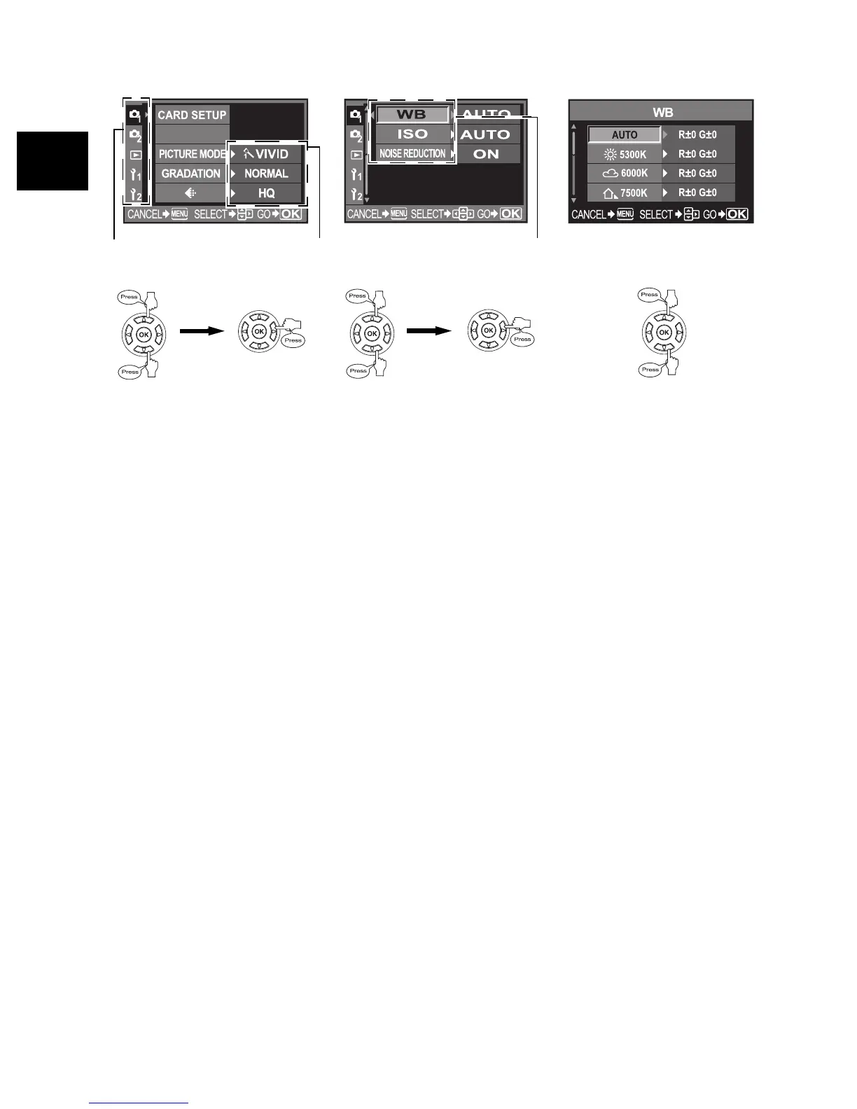 Goes to each setting screen (some