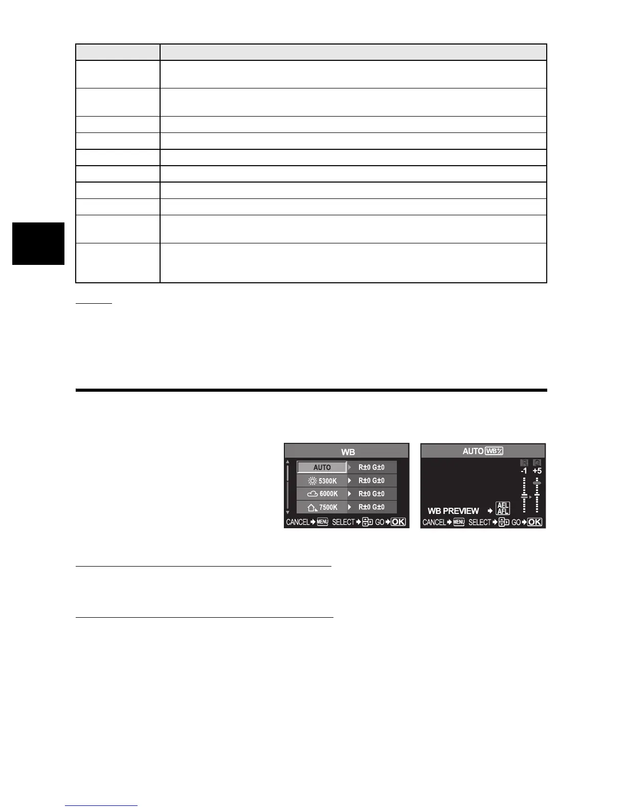 This function lets you make fine changes to the auto WB and preset WB settings.