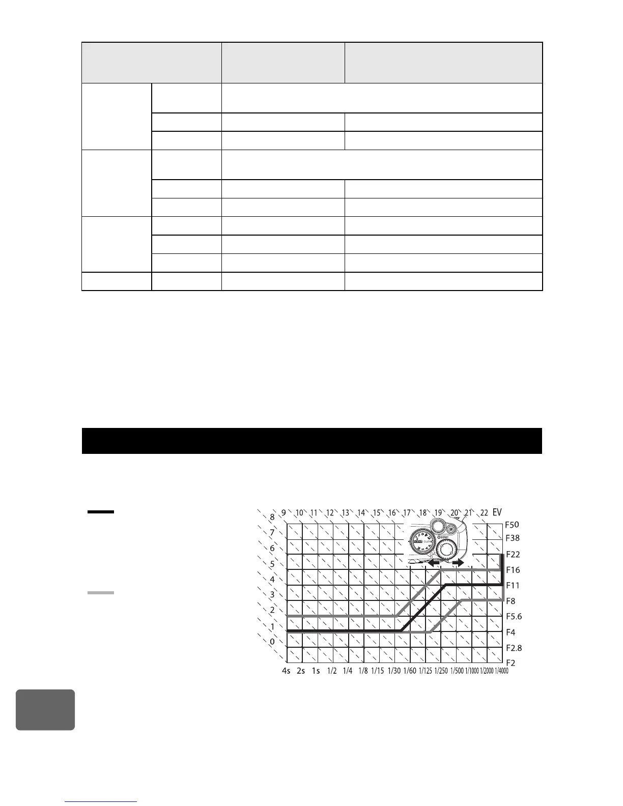 mode, the camera is programmed such that the aperture value and shutter speed are