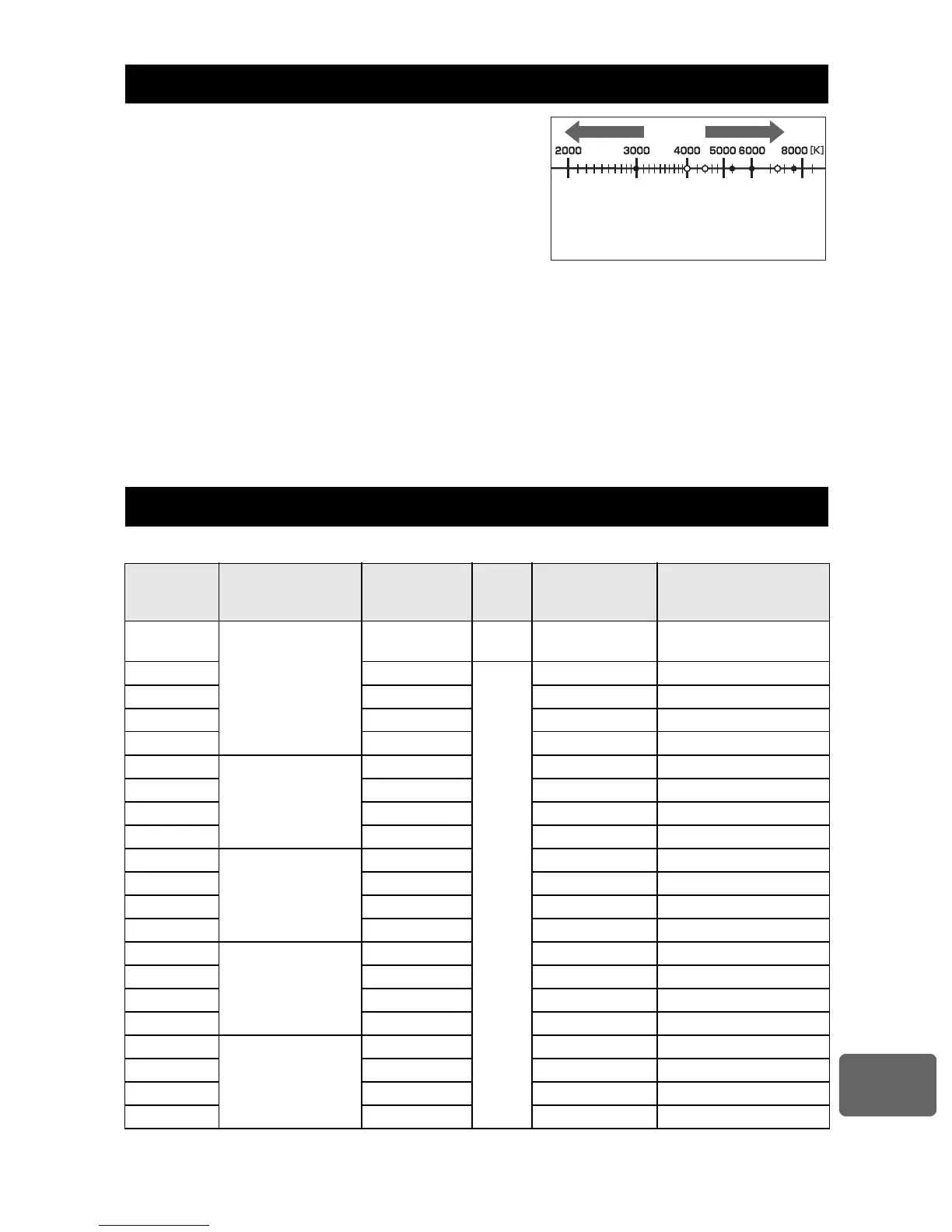 temperatures, and should not be considered strictly as color temperatures. Use these settings
