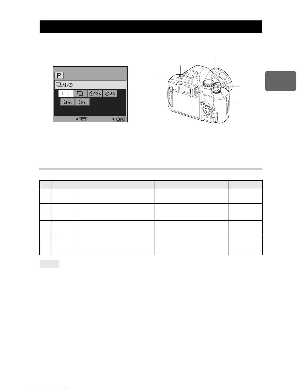 e.g.) Setting Sequential / Self-timer /