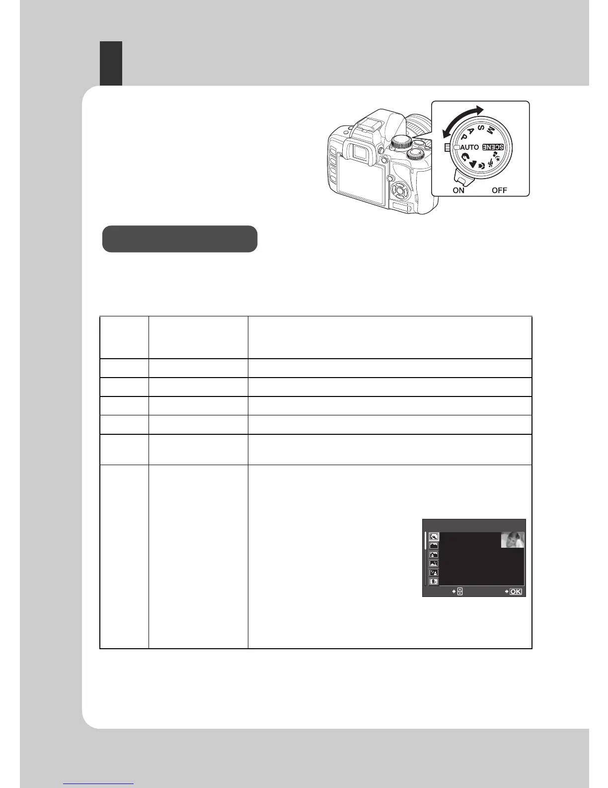 Select according to the shooting scene. The camera sets the appropriate shooting conditions