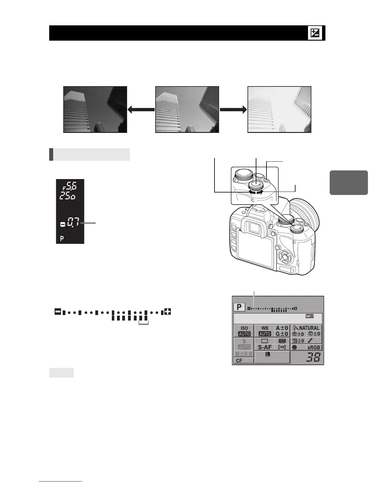 The exposure compensation indicator is displayed. The