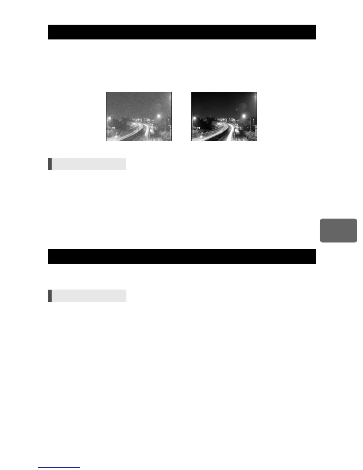 scenes, shutter speeds are slower and noise tends to appear in images. With