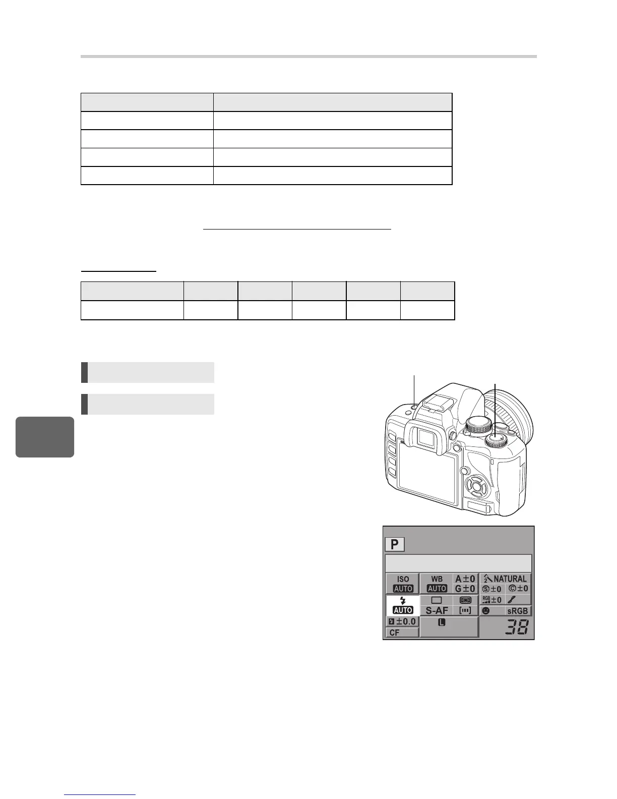 “Flash modes that can be set by shooting mode” (