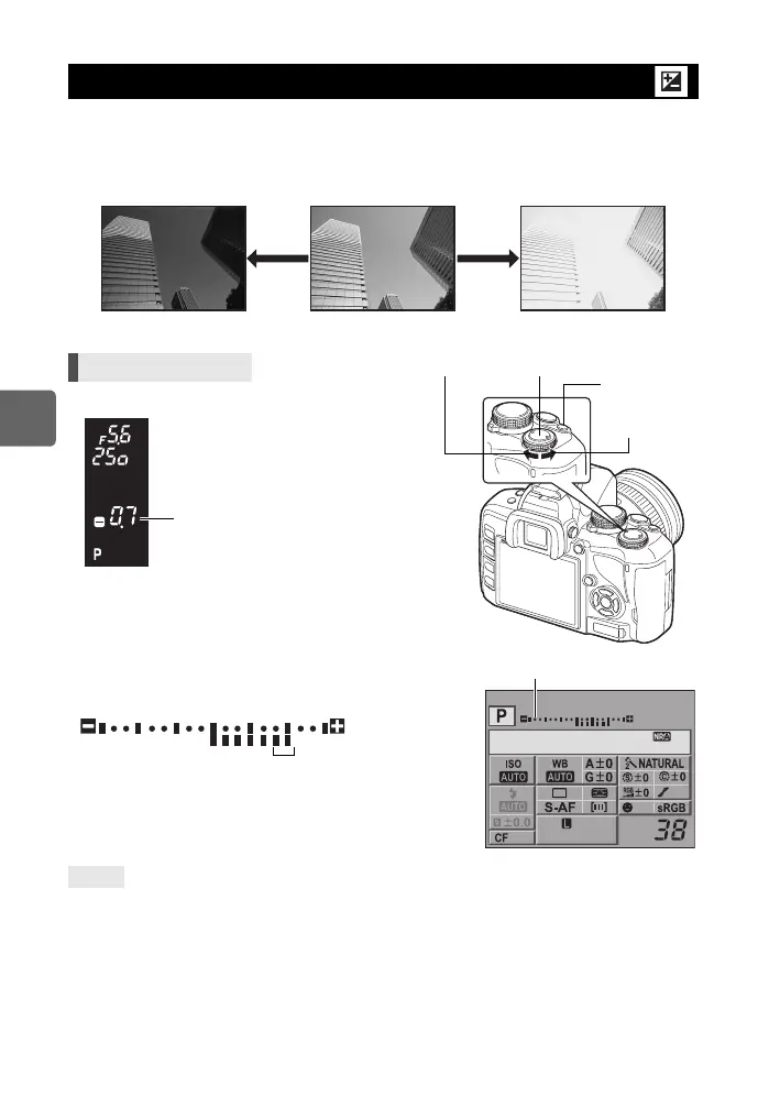 • The exposure compensation indicator is displayed. The