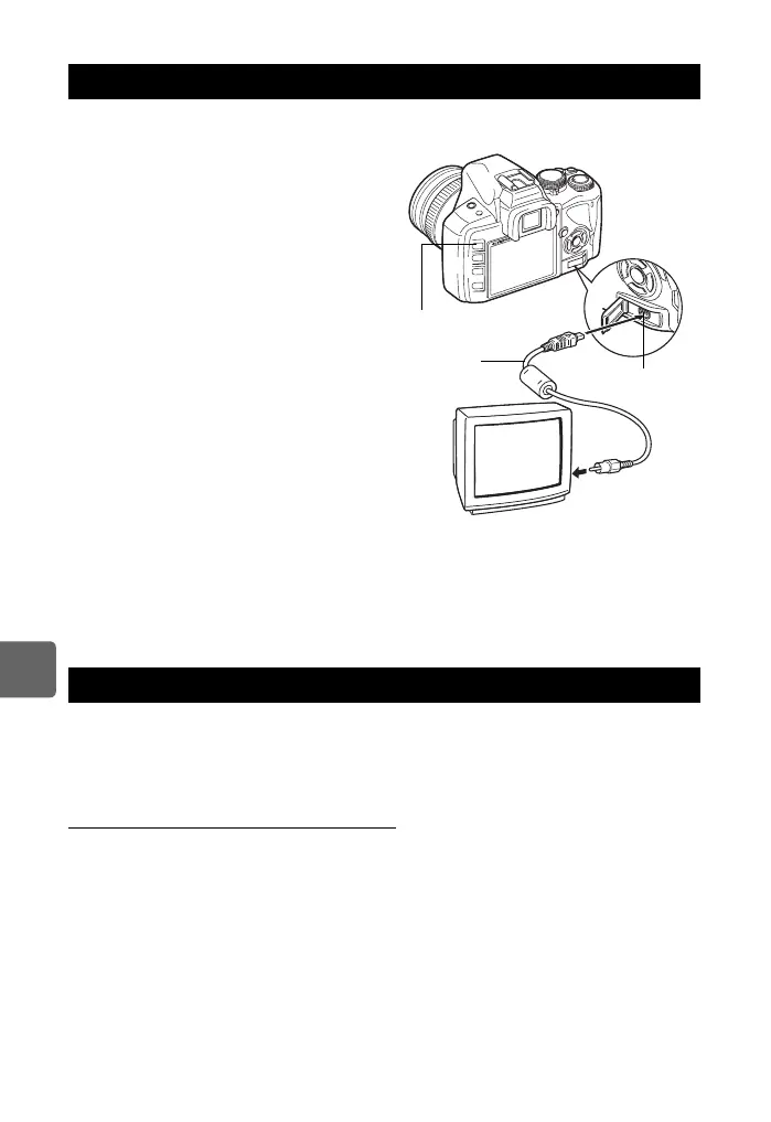 • The camera’s monitor turns off automatically when the video cable is connected to the