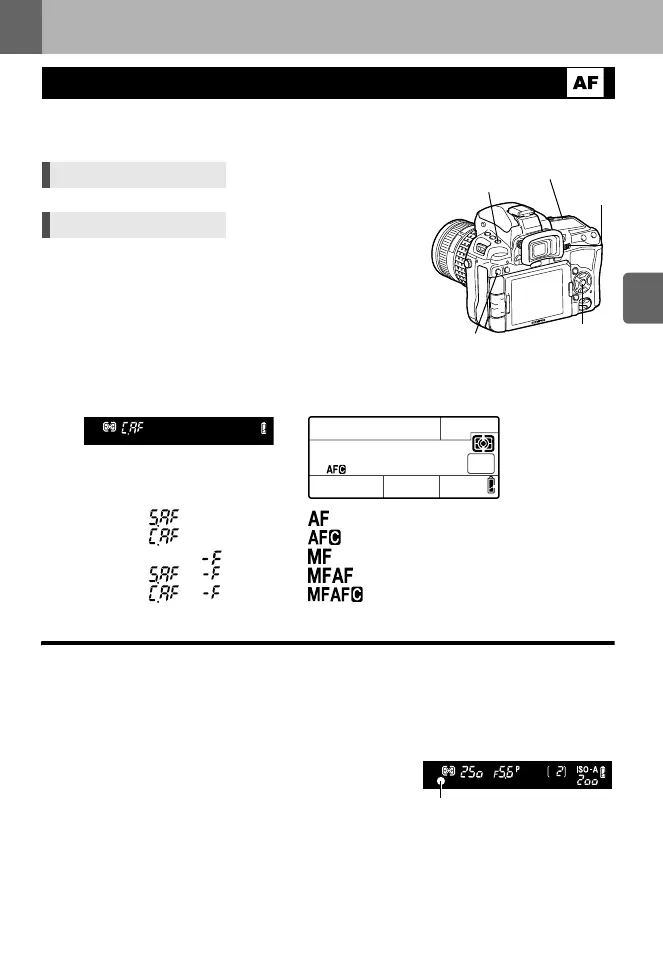 É possível tirar fotografias combinando o modo S-AF ou C-AF com o modo MF.