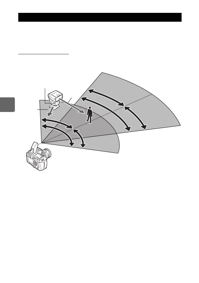1 Position the flash while referring to the “Wireless flash setup range”, and turn on