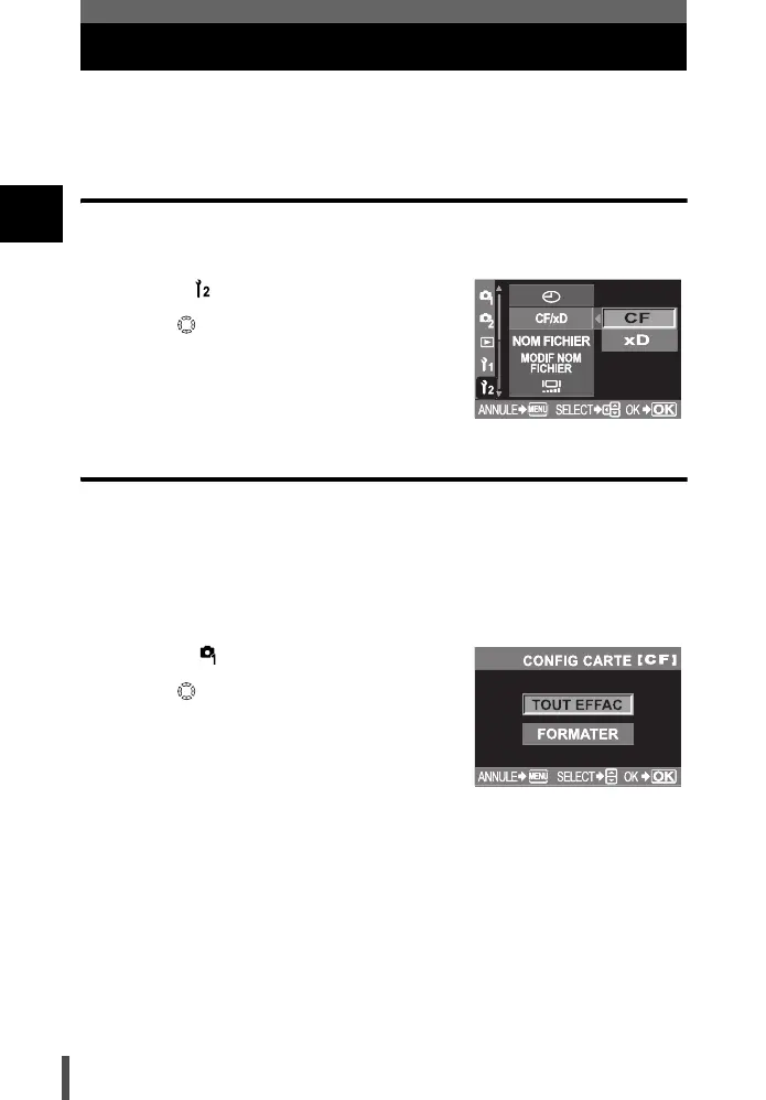 Sélectionner le type de carte devant être utilisé (xD-Picture Card ou