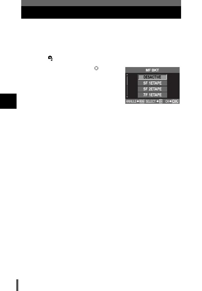 • Pour utiliser la fonction MF BKT, poser l'appareil photo sur un trépied ou un
