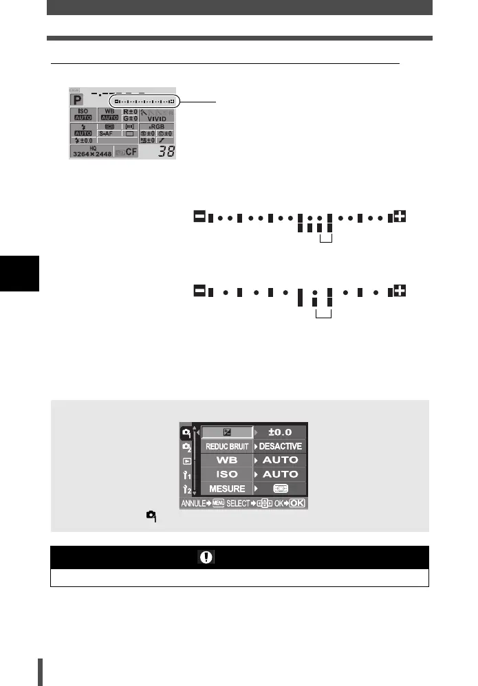 Menu[ ] [ F ] Indicateur de compensation d’exposition
