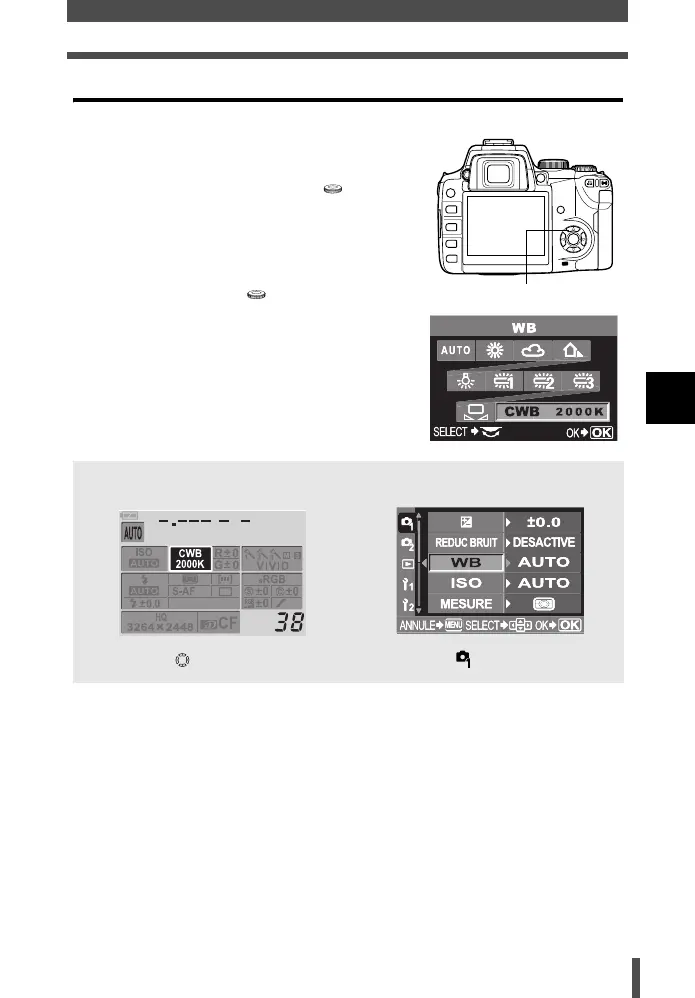 Réglage sur l'écran de contrôle Réglage sur le menu