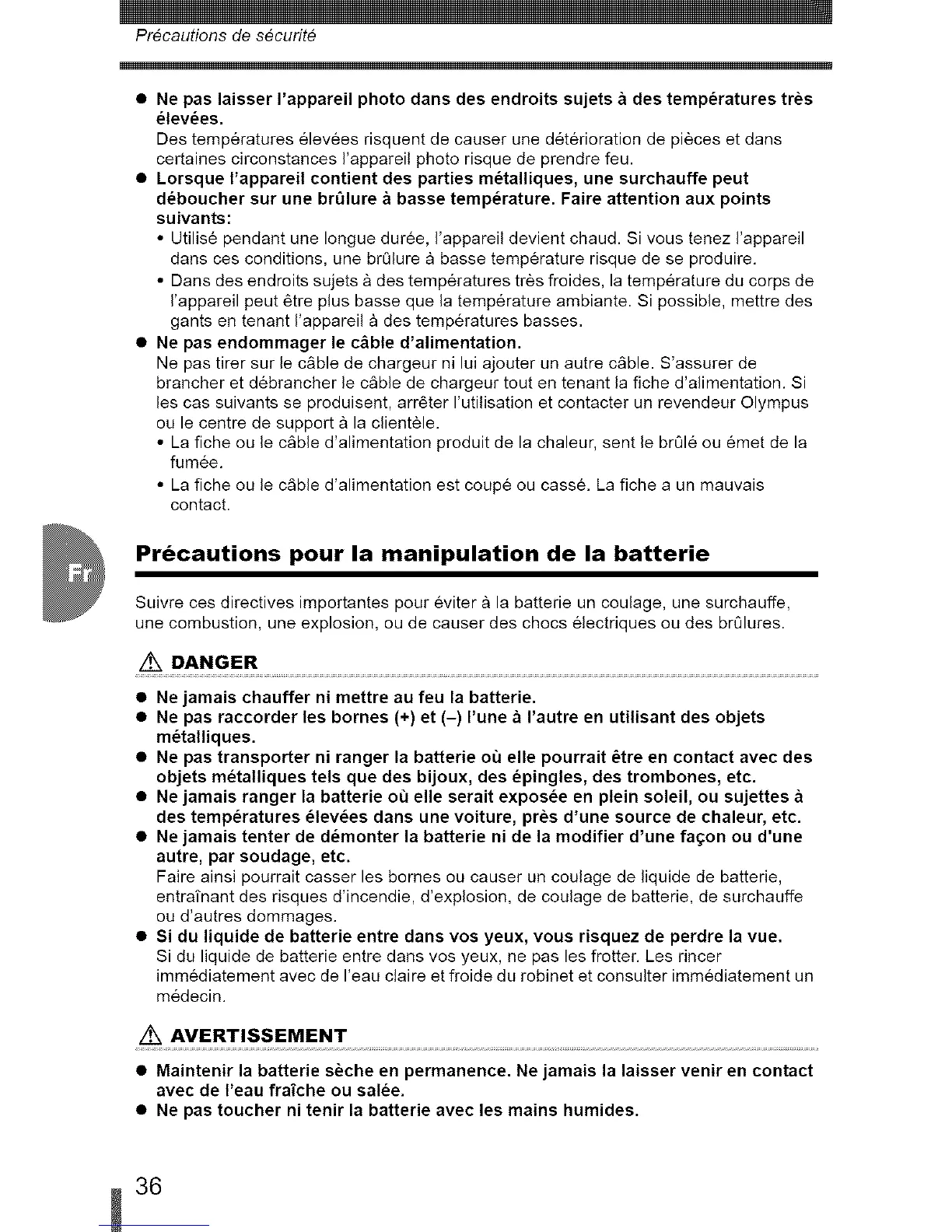 • Ne jamais tenter de d_monter la batterie ni de la modifier d'une fa_:on ou d'une