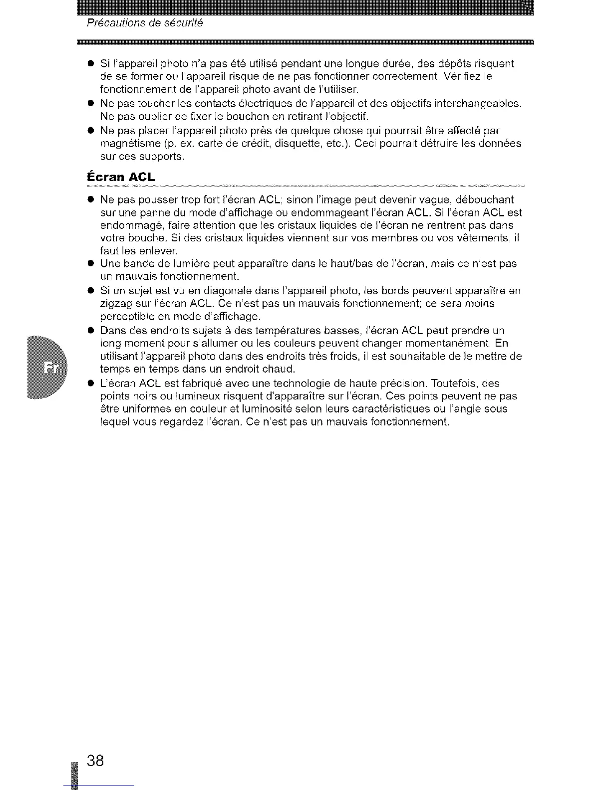• Dans des endroits sujets _ des temperatures basses, I'ecran ACL peut prendre un