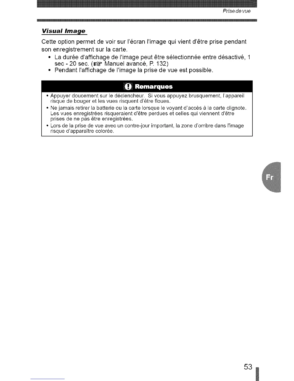 • Pendant raffichage de rimage la prise de vue est possible