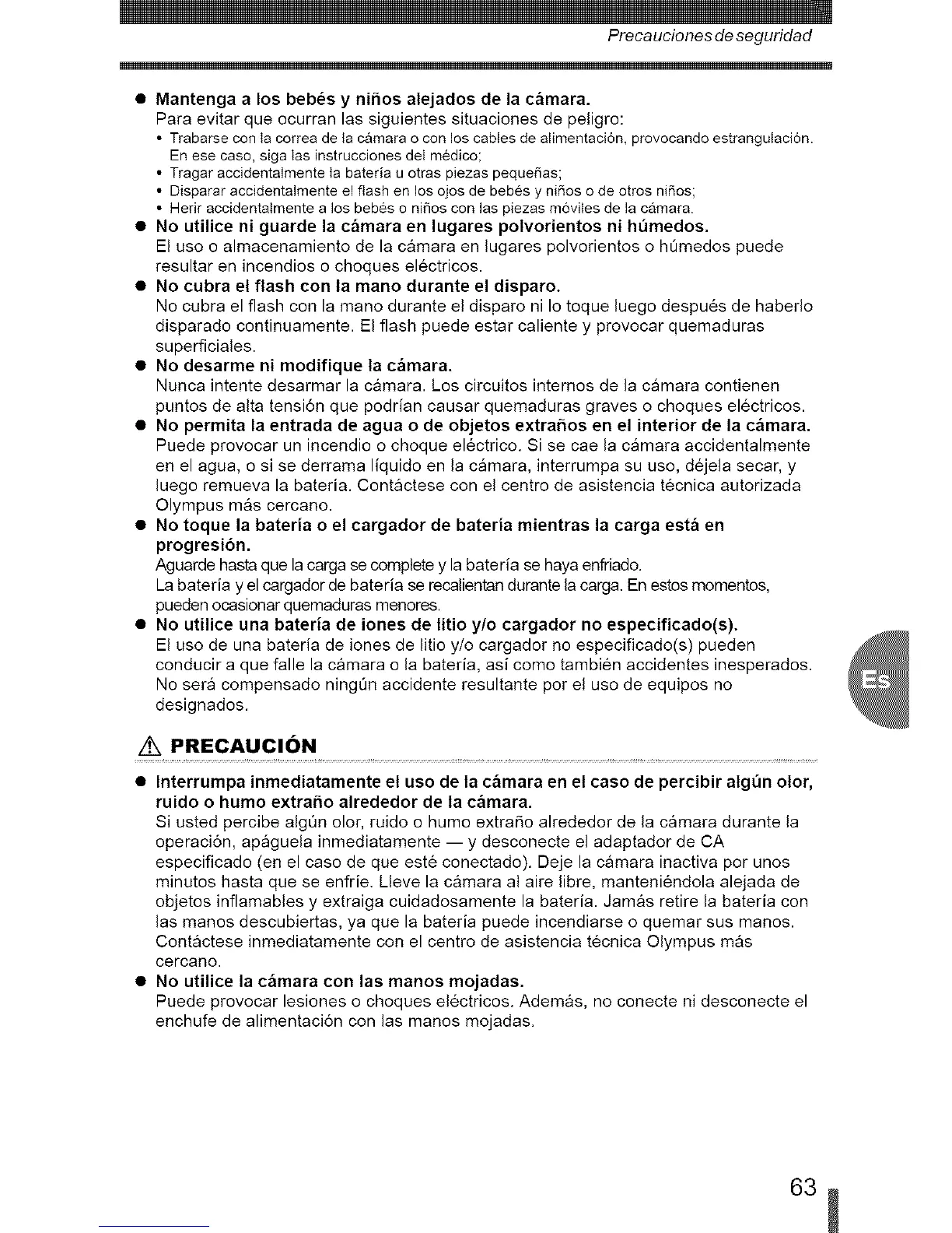• Interrumpa inmediatamente el uso de la c_mara en el caso de percibir algun olor,