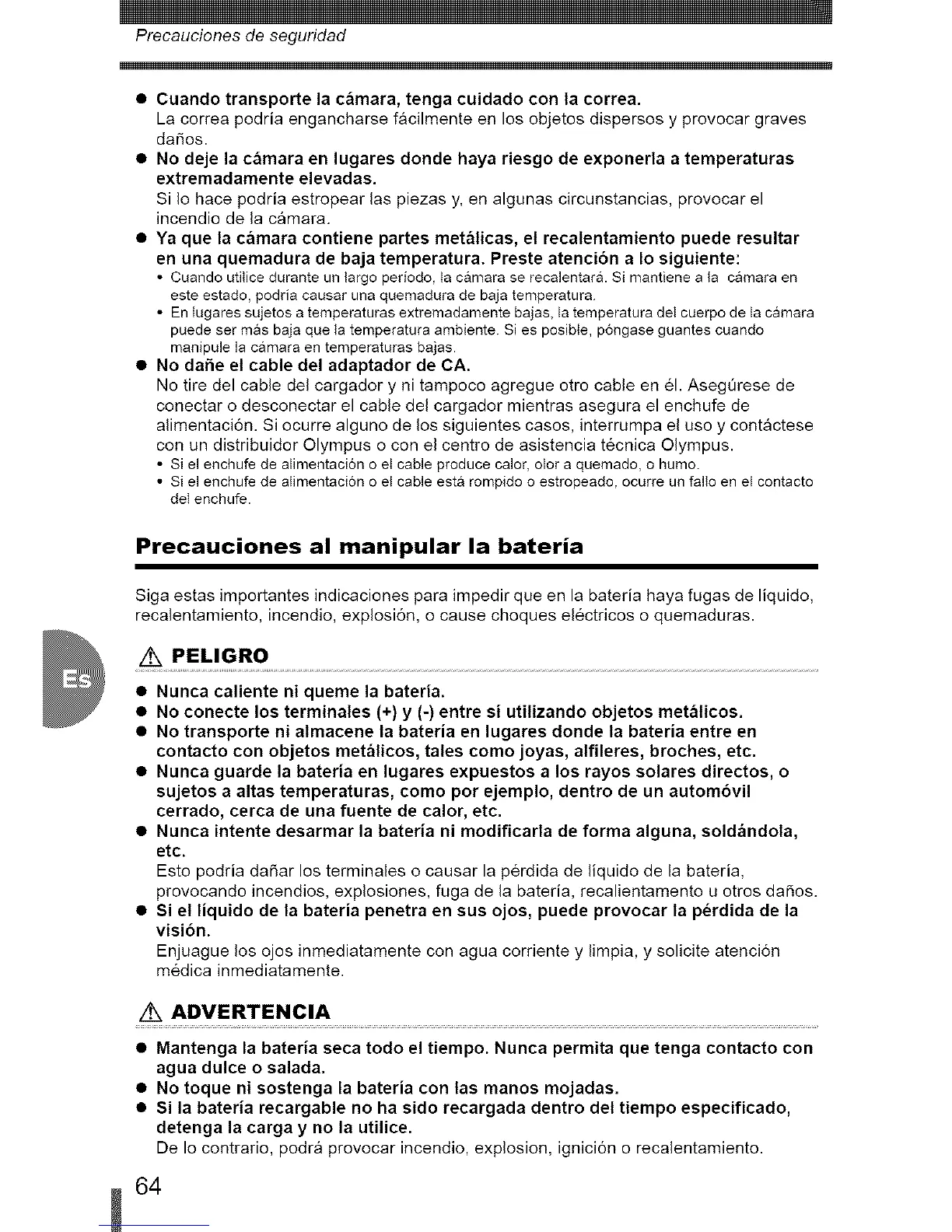 Precauciones al manipular la bateria