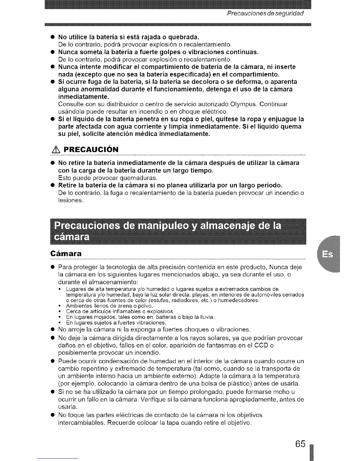 • Retire la bateria de la c&mara si no planea utilizarla por un largo periodo.