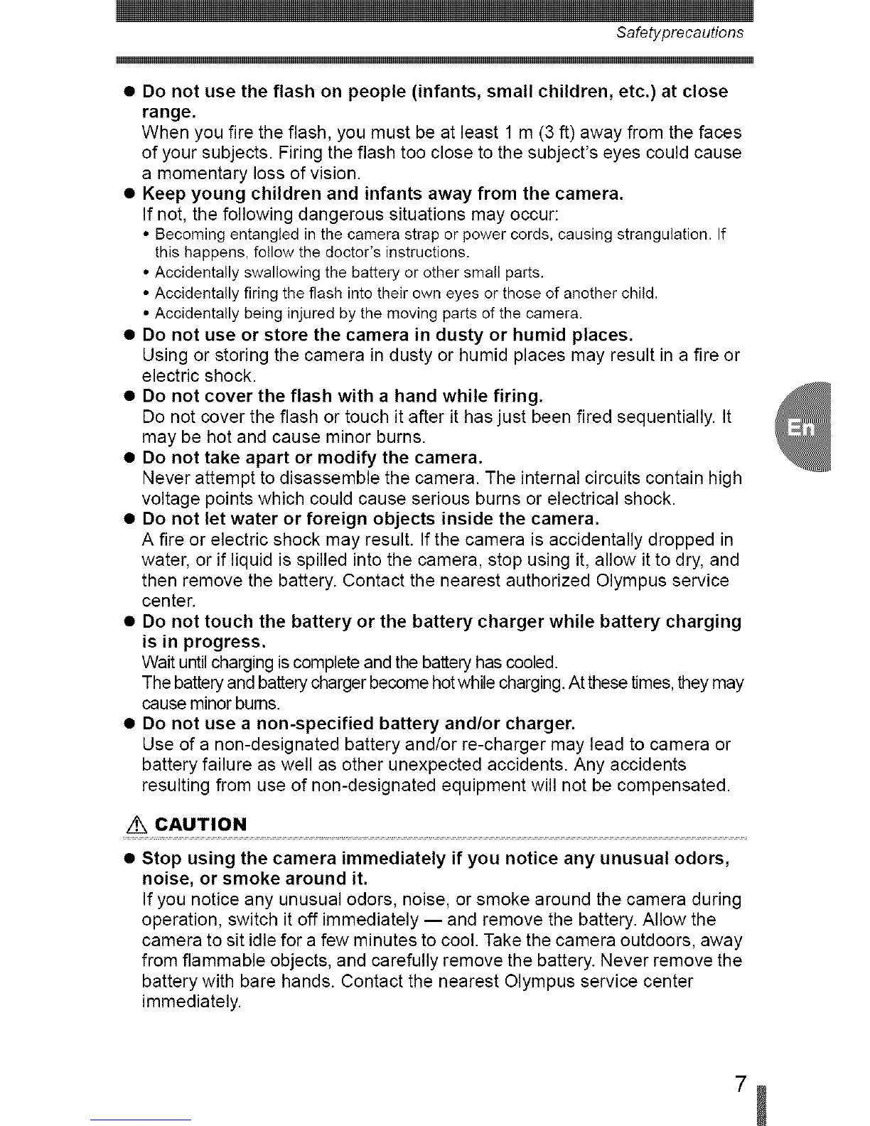 Use of a non-designated battery and/or re-charger may lead to camera or