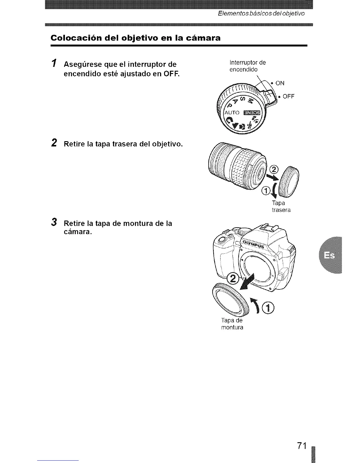 2 Retire la tapa trasera del objetivo.