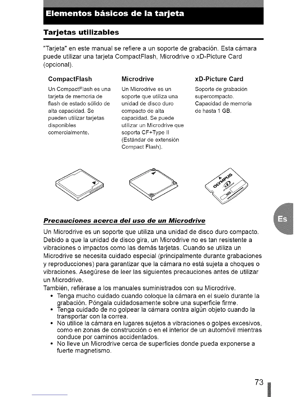 puede utilizar una tarjeta CompactFlash, Microdrive o xD-Picture Card