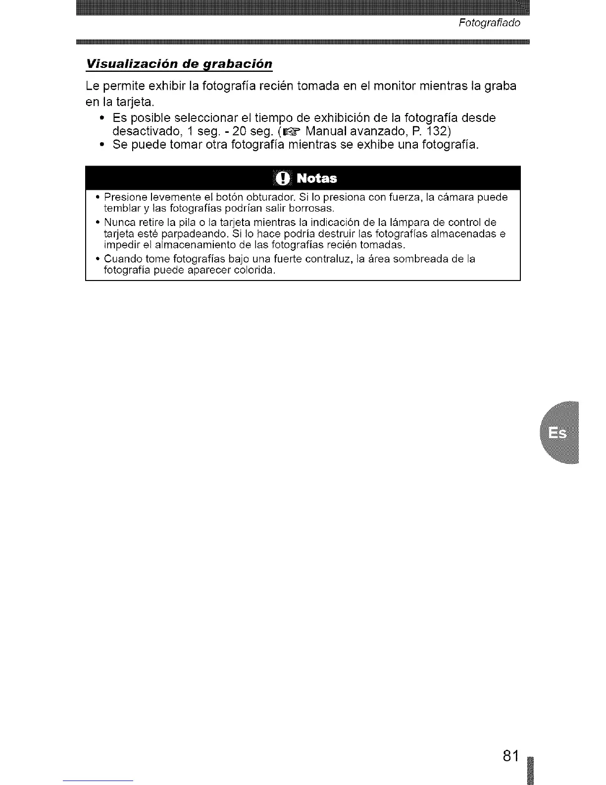 • Se puede tomar otra fotografia mientras se exhibe una fotografia