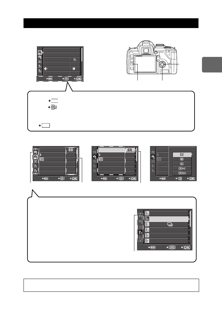 The symbols displayed on the LCD monitor correspond to the arrow pad