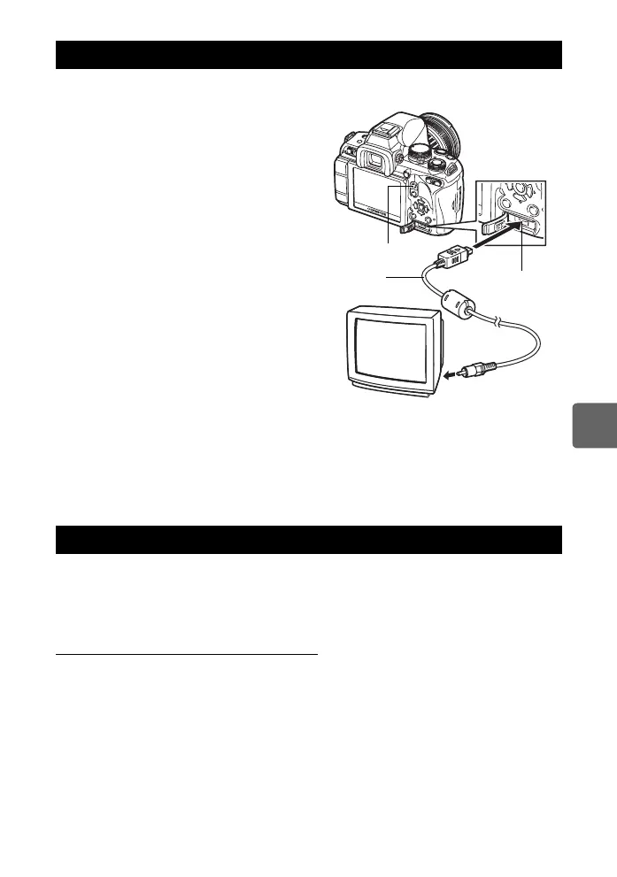 • The camera’s monitor turns off automatically when the video cable is connected to the