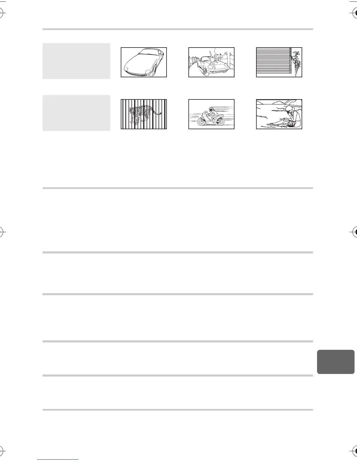 It may be difficult to focus with auto focus in the following situations.
