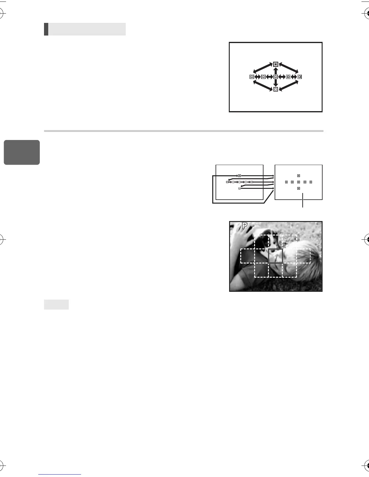 Press the shutter button halfway and release it, then use the arrow pad to change the position of