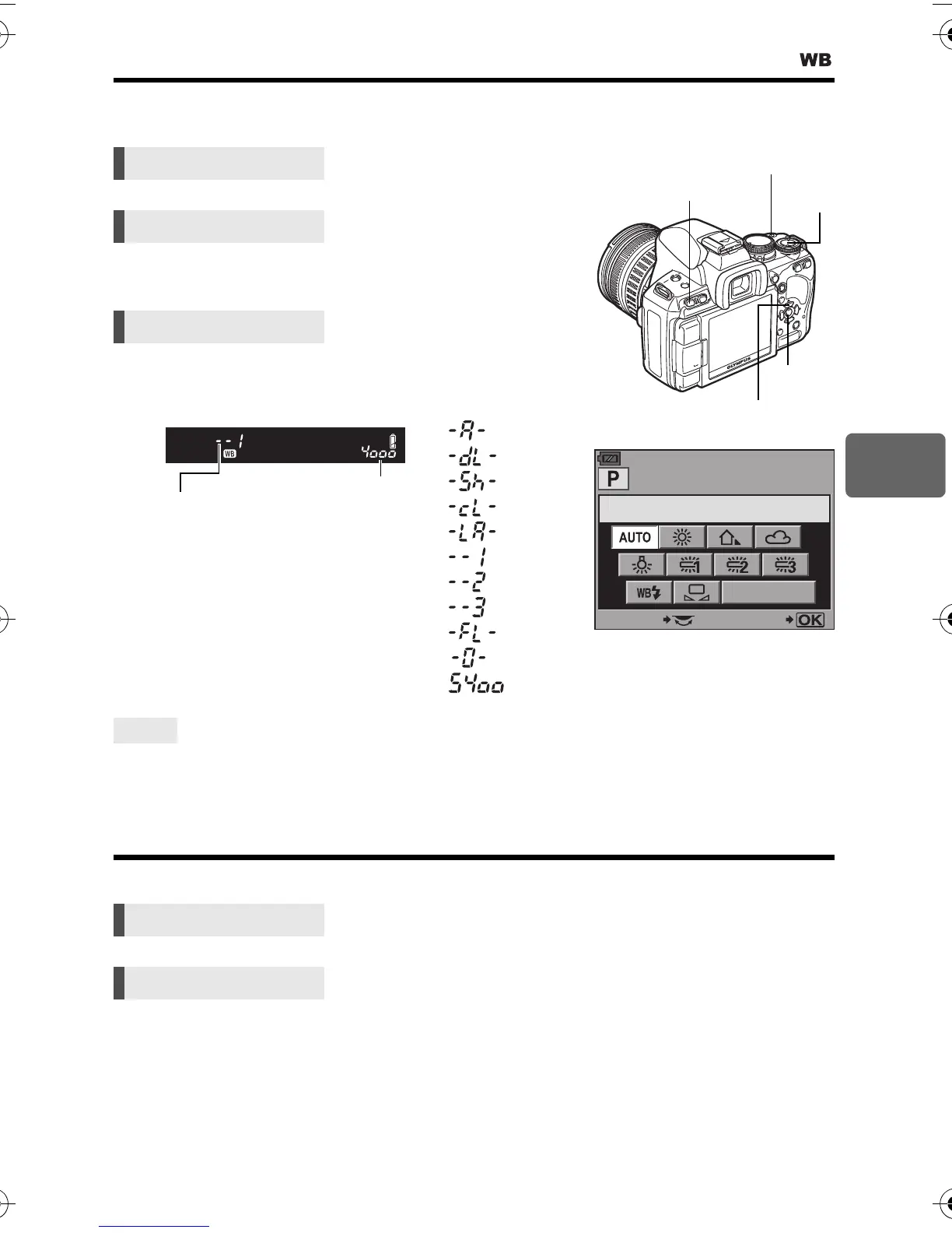 This function lets you make fine changes to the auto WB and preset WB settings.