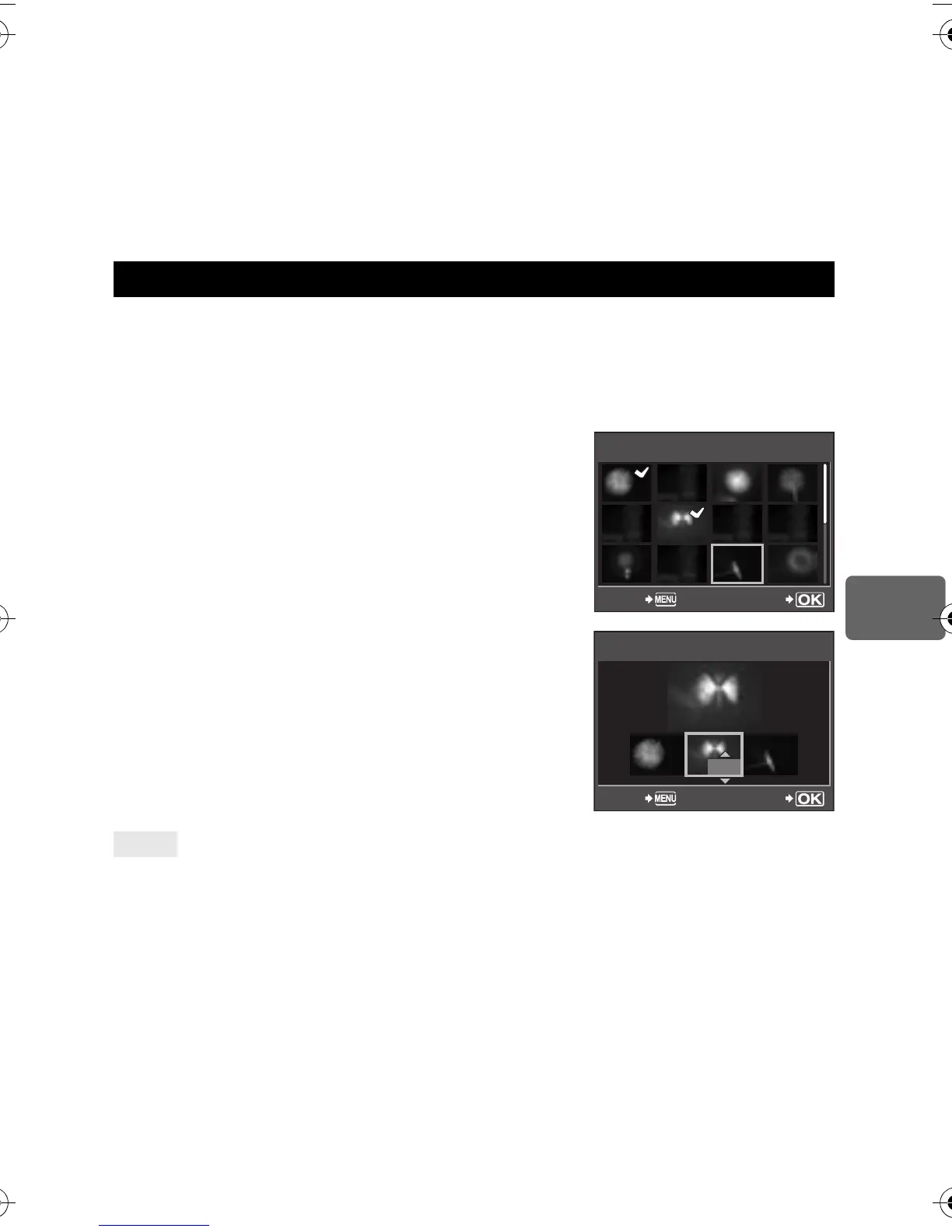 • When selecting a frame to overlay, the JPEG images for images recorded in JPEG+RAW are