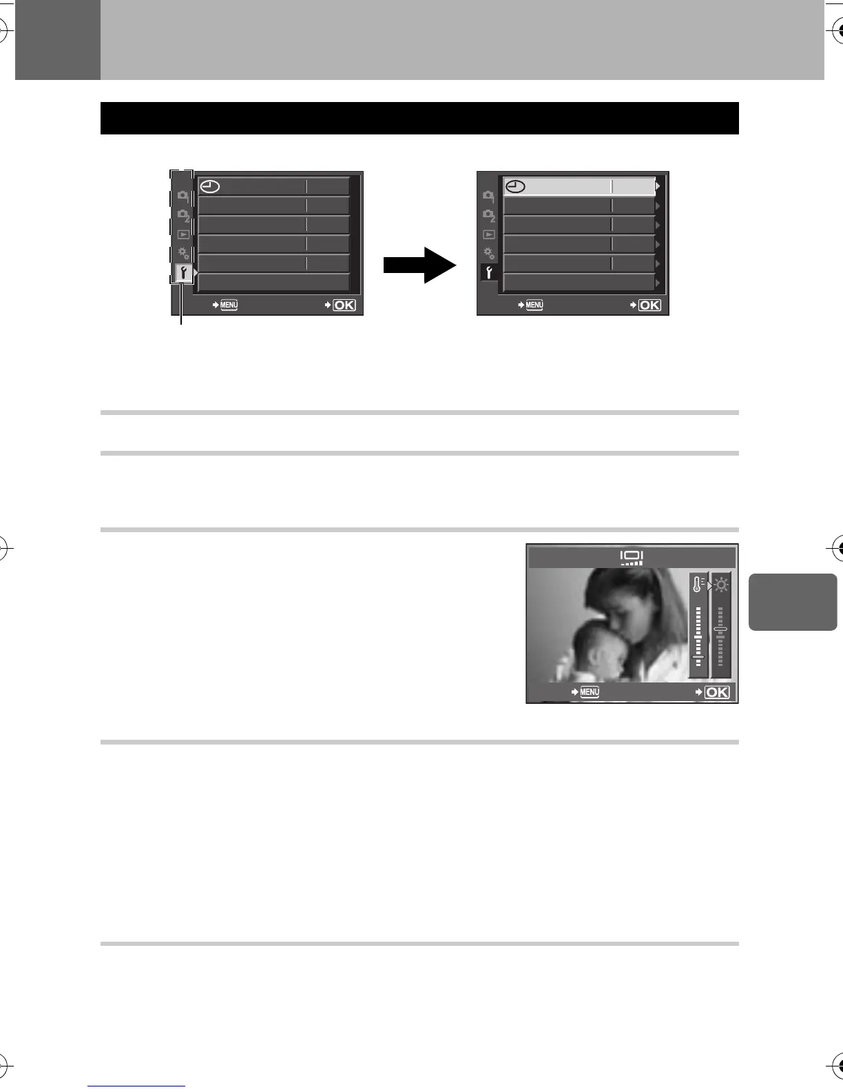 For details on using the menu lists, see “Setting on the menu” (gP. 22).