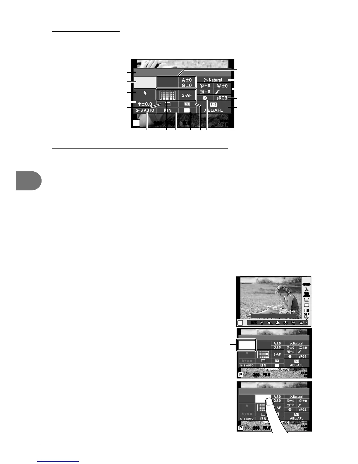 view. Shooting setting statuses are displayed in a list. Select options using the arrow
